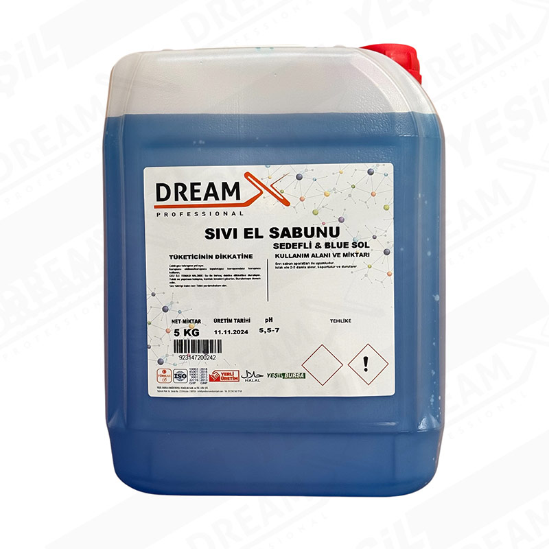 Yeşil Bursa Endüstriyel’in Dreamx markası altında sunduğu Sıvı El Sabunu Sedefli Blue Sol, eşsiz temizleme gücü, gliserinle zenginleştirilmiş nemlendirici formülü ve Blue Sol’un ferahlatıcı kokusunu bir araya getiriyor. Sedefli yapısıyla ellerinizde yumuşaklık ve parlaklık hissi bırakırken, hijyenik bir temizlik sunar.